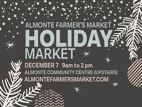 Starting to feel festive?? This is the place to find locally grown farm fresh foods and hand made gifts, friendly faces and festive vibes! Join us for a hot breakfast or lunch while you get your knifes sharpened! Try some hot sauces, or try on a new made-in-Almonte dress! Bring your bags for your fresh produce, locally raised meats, ferments and frozen soups. We’ll see you there!