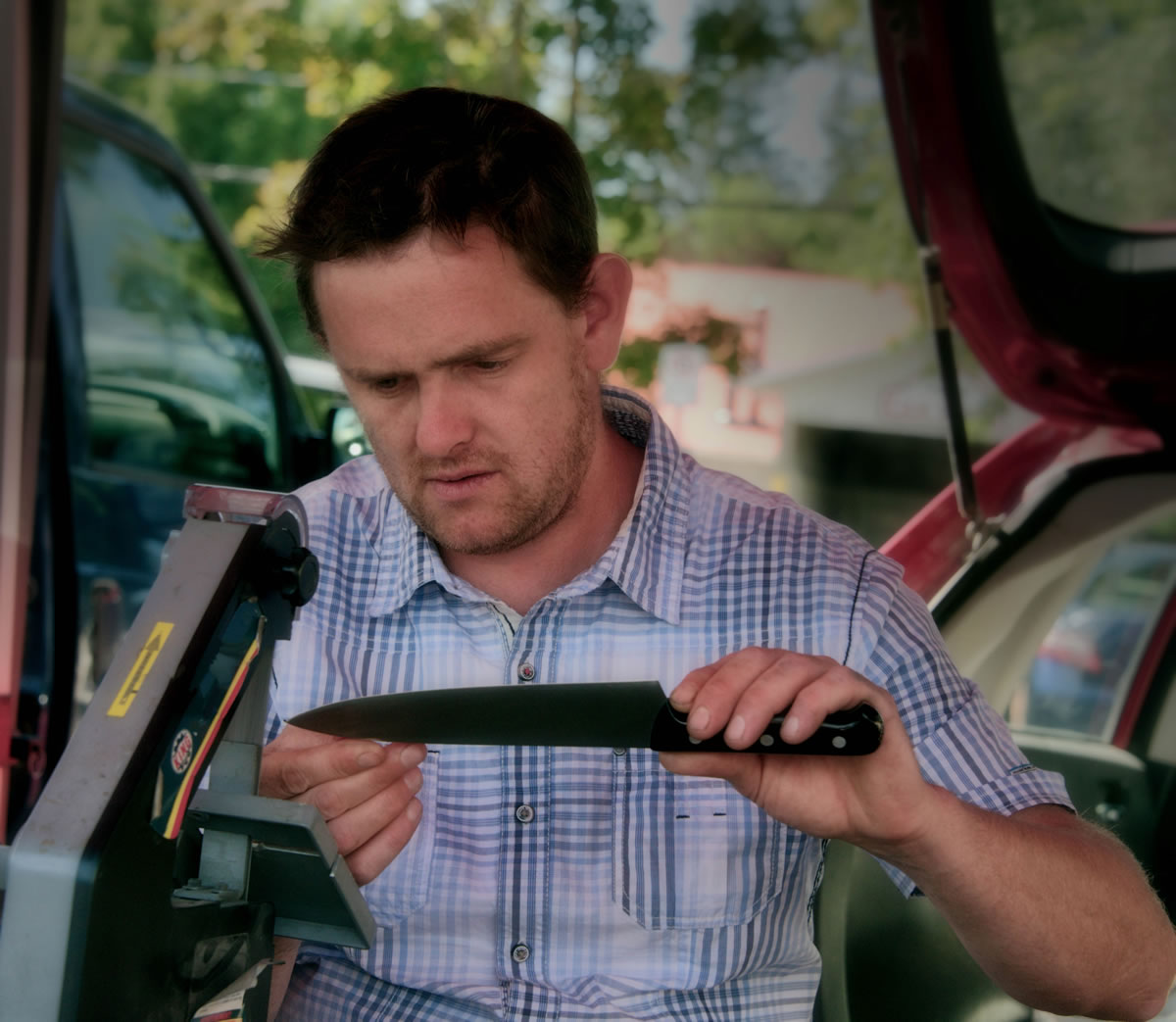 Nick brings a few pieces to market, but he is mostly there to offer his sharpening services. So bring your dull edges that should be sharp! He’ll sharpen anything from knives to chisels to shears, swords and axes.